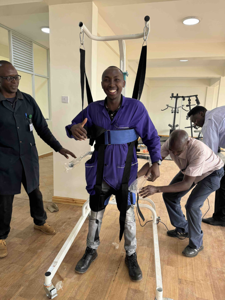 The new equipment is such a blessing to all! There was so much excitement as the equipment was tested out by hospital staff. Above, the new gait trainer is demonstrated.